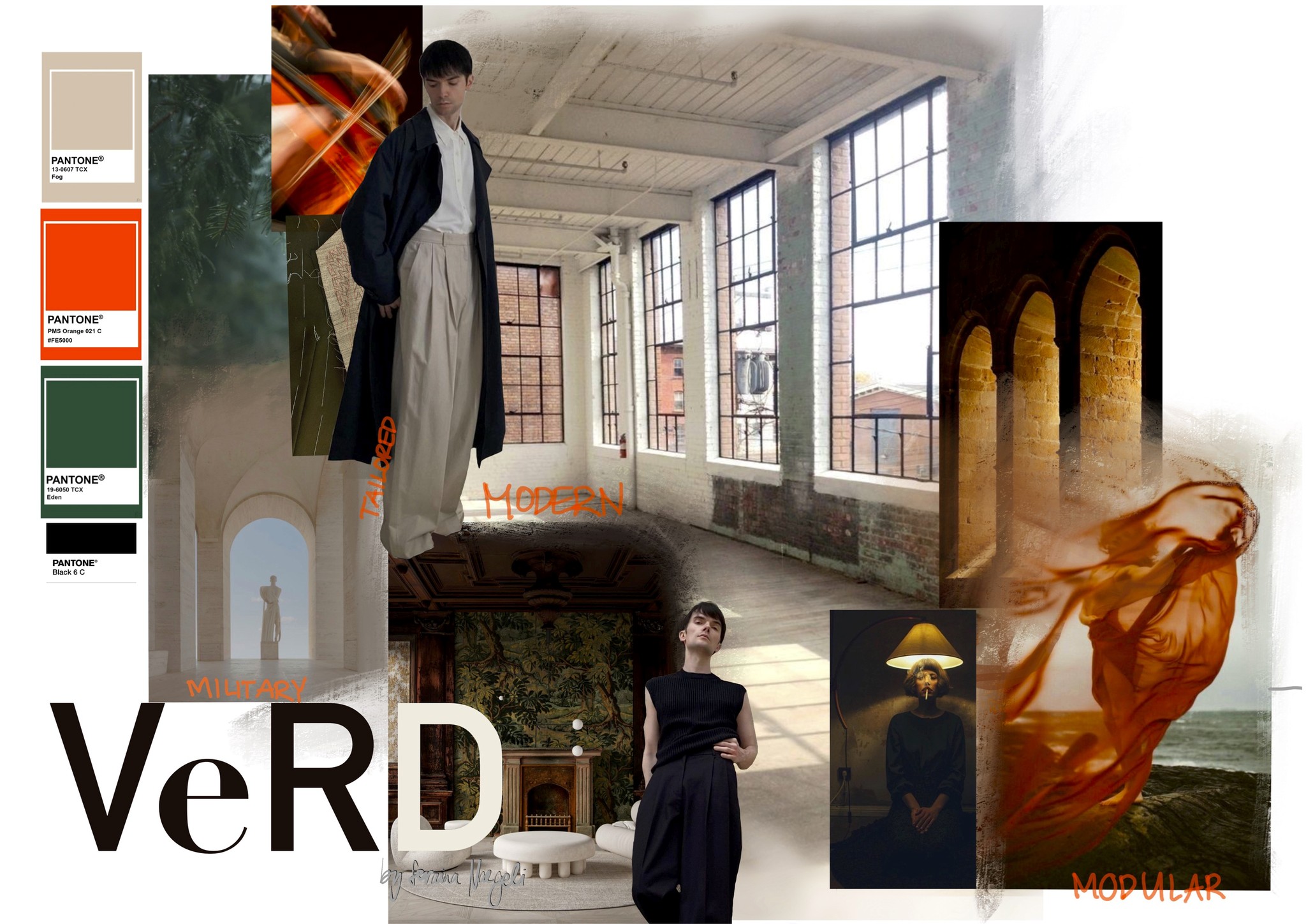 This magazine is inspired by one of my personal favorite pieces of music, Palladio. The piece has accompanied me throughout my life. I once played it in an orchestra, and I have never forgotten it since. Its three parts immediately sparked the idea of creating a collection with three sections. I envisioned men with strong, dramatic strides and imposing figures coming toward me. The music evoked many emotions—excitement, grandeur, even sadness and sorrow. I love when music stirs something inside you, and this is what led me to research the composer, Karl Jenkins, and the inspiration behind his composition. As soon as I began my research, I was struck by how thoughtful Karl Jenkins’ piece was. He had an in-depth understanding of his inspiration, Andrea Palladio, an Italian Renaissance architect from Venice.